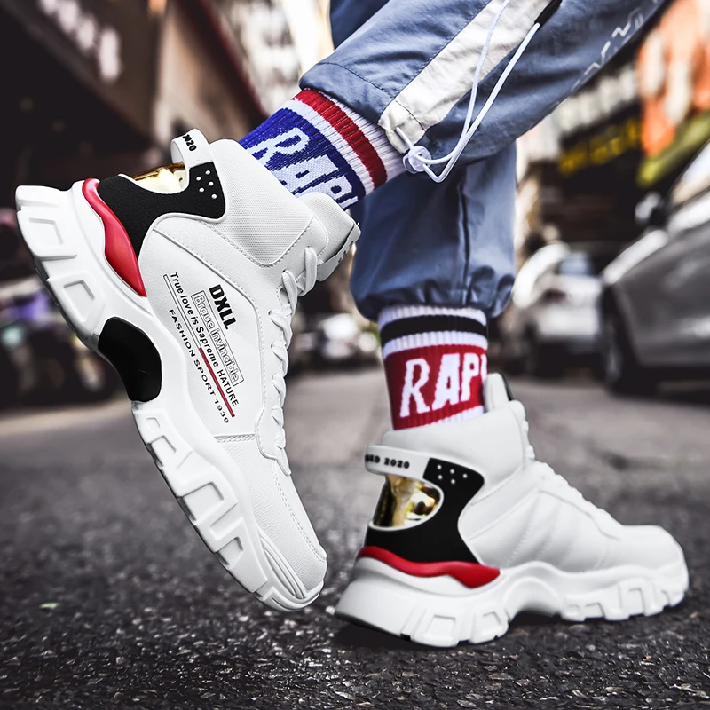 Best Product Men Platform Sport Shoes High Top Lace Up Dorky Dad Sneakers Male Lace Up Round Toe Vulcanized Shoe